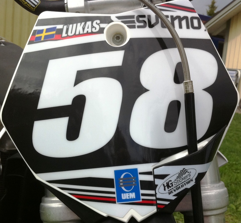 Årets Riksfinal gick av stapeln i Hallsberg på deras jättefina sandbana. Anton lyckades ta sig till a-final i 65 cc där han tog en 14:e plats, Anton hade en jättekul fajt med kompisen Max Lövgren. Max och Anton hade många sköna race förra året när de körde 50 cc så det var kul att se dom kämpa igen. Lukas vann 85 G klassen och ovan finns en liten film från finalen (filmat med mobilen).