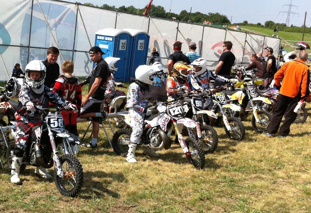 Nu är vi hemkomna efter ett häftigt äventyr i Tyskland. Banan var kanon, vädret perfekt och arrangörerna gjorde ett toppenjobb. Det var mycket annorlunda än hemmavid. Det första vi märkte var att alla körde i depån, vilket Lukas inte var sen att pröva.... Det var även en stor skillnad att köra 40 på grinden mot 20 som vi har här hemma. Hoppen på banan var jättefina perfekta uppfarter och mjuka långa landningar, det fanns tex. ett platåhopp som vi stegade upp till 25 m som dom flesta hoppade. Lukas kvalade in som nia (tidskval) och fick en bra plats på grinden. Tyvärr upptäckte vi att Lukas hade punka när han kom in till waitingzone efter mastervarvet i första heatet, det var inget att göra åt, Lukas fick köra ändå och slutade 13:e. I andra heatet blev det tyvärr en vurpa på första varvet och han fick köra upp sig från sist (37) och slutade heatet som 18:e. Total placering för dagen blev 13:e vilket gav 11 EM poäng. Nu laddar vi om mot nästa tävling som går i Halle, Holland den 10/7.